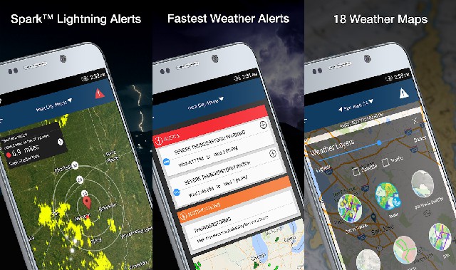 Fitur yang paling menarik dari aplikasi ini adalah Spark™ Lightning Alerts yang merupakan fitur pendeteksi petir secara real-time dan juga akan memberitahu kamu bila lokasi kamu rawan akan sambaran petir