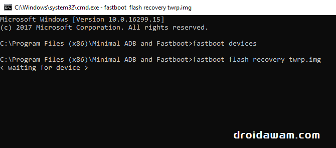 Setelah itu, kamu bisa mencoba memasang twrp atau lainnya lewat fastboot menggunakan cmd komputer tanpa muncul Waiting for device lagi