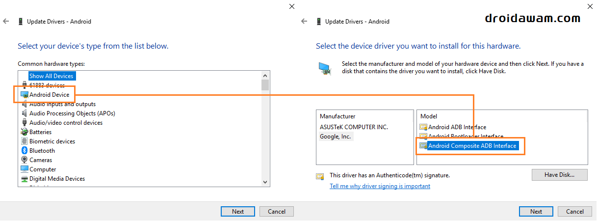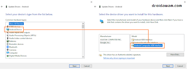 8. Cari dan klik 2x Android Composite ADB Interface
