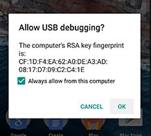 5. Jika tiba-tiba muncul pesan “Izinkan debugging USB?” pada android, pilih Oke